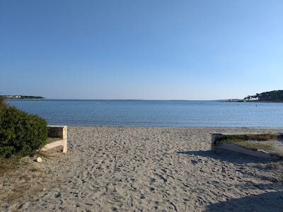 Saturday was a beautiful day and I went for a long walk in the afternoon, exploring some new territory southwest of town. West of town is the archeological park. Southwest of town is the beach and a longer peninsula with a big campground and a forest park. I wasn't planning to walk around the whole peninsula - I just wanted to walk down to the beach and sit and do some work on my laptop. But there wasn't anywhere to sit that had any kind of table except the beach bar, and it was a beautiful day, so after trying to work with my laptop balanced on my lap for a while, I decided to venture on and explore, instead. Even then, I wasn't planning to circumnavigate the peninsula. But I did.