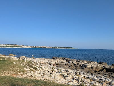 It was a nice walk. The campground takes up most of the space, but it's open access and grassy and full of tall, well-pruned pines and the coastline is rocky and the sun was low enough to cast some color over the landscape. At the tip of the peninsula is the Kašteja Forest Park, a round bit of land that very obviously used to be an island. I debated walking around it and decided I might as well, since I was there - next time I decide to go that far, I'll be riding my bike.