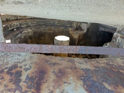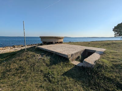 Oblivious influencers aside, the rest of my walk was uninterrupted. I passed by two bunkers on this island-turned-headland. The internet suggests they were built during WWI by the Austro-Hungarian Empire, which controlled this area at the time. The bunkers, as visible above ground, are small, only big enough for a few men. I don't know how far, if at all, they extend underground. They are, unfortunately, not accessible for further exploration. I love seeing this kind of thing - I've been interested in bunkers since I got to explore the ones at Fort Warden in Washington state when I was ~12 or 13 years old, and the existence of two in the forest park is partly why I decided to press on with my exploration every time I considered heading home.
