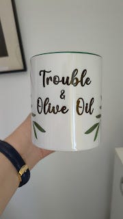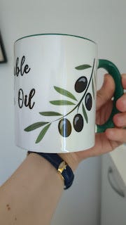I had quite a bit of time before the first afternoon bus back to Medulin, so I wandered around, munching on a slice of pizza from one place (€2.50) and an apple strudel-thing from one of the many Mlinar bakeries (€1.20). While sitting and eating the pizza slice, I noticed the store across the street (Gulliver Production) advertised "Printing Embroidering Made to order". This gave me an idea, and went inside to see what they sold and what their prices were like. I had planned to bring a mug with me from home but left it behind in favor of bringing another book, and the price of the mugs was quite reasonable, so I got myself a custom mug for €12!