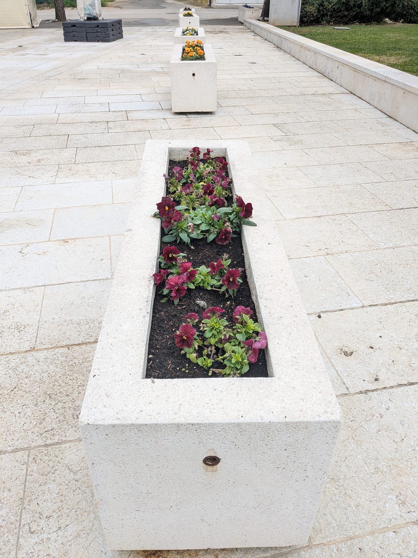Here in southwestern Istria, the earliest spring flowers began blooming by mid-February. There are trees blooming and budding out. And at the end of the month, I noticed fresh flowers in the planter boxes on the waterfront.