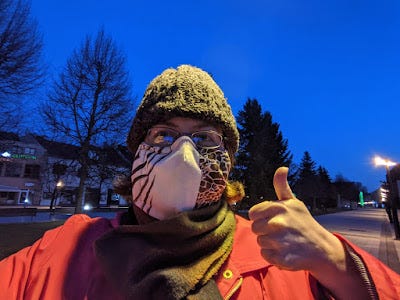 Me in Old Town Martin, Slovakia, in the pedestrian zone, wearing a homemade mask kindly given to me by a colleague shortly after the pandemic shut everything down in March.