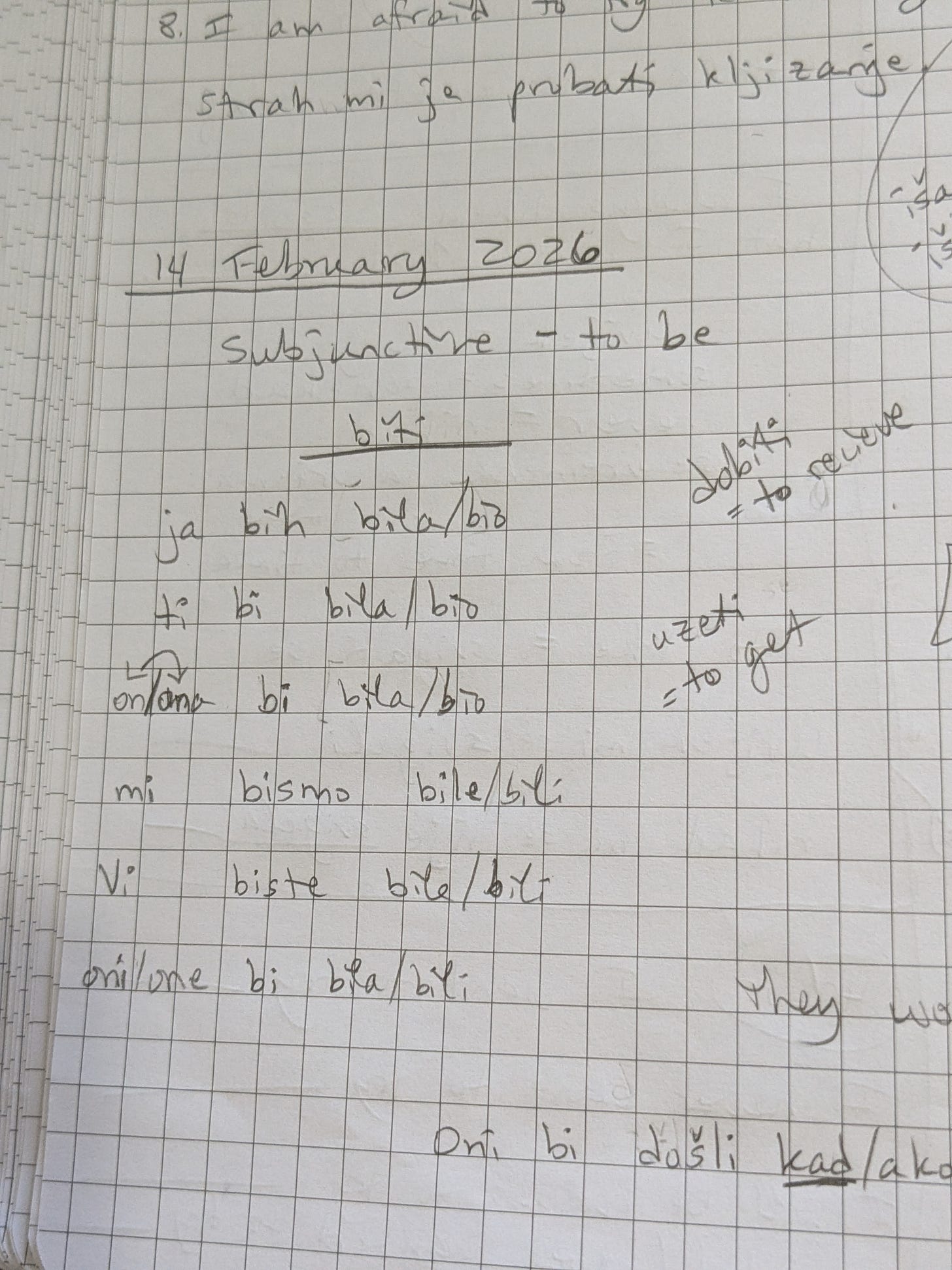 I’m having a lovely time studying Croatian, and today managed to tell my teacher what I did this morning, what I was doing at the time, and what I will do the rest of the day - past, present, and future tenses off the cuff, with a little subjunctive (which we just went over today) mixed in.